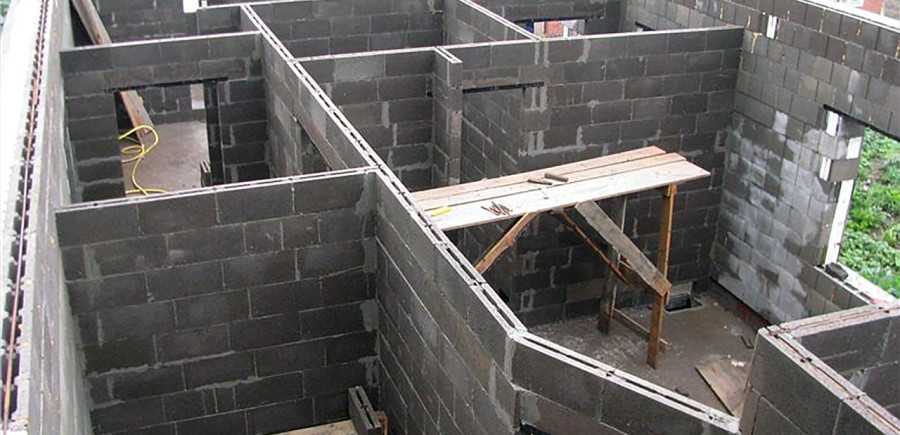 Важно возвести прочный ленточный, столбчатый фундамент и утеплить наружные стены. Если в качестве перекрытия будут выбраны железобетонные плиты, обязательно нужно установить монолитный пояс, иначе блоки не выдержат нагрузки