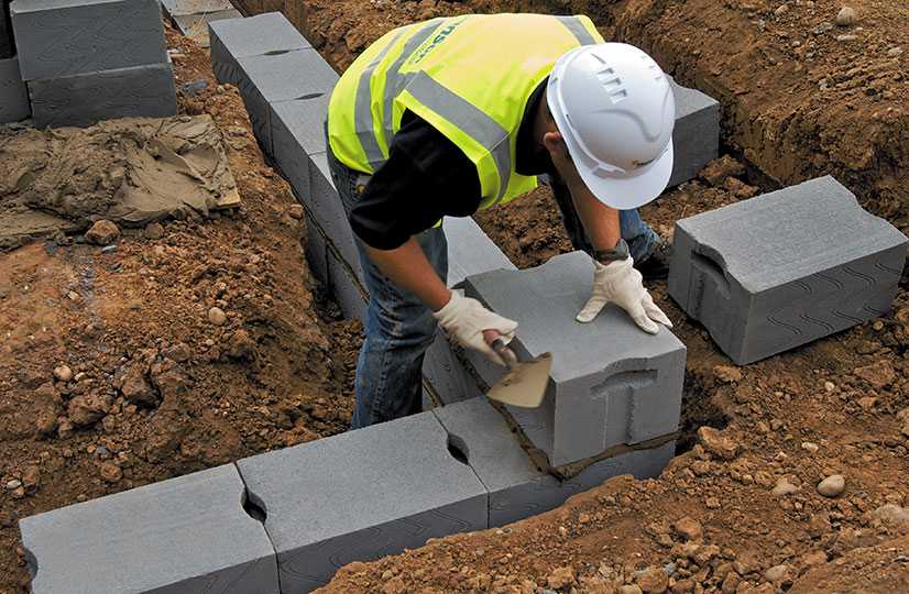 Они схожи с искусственным камнем, обладают высокой прочностью и долговечностью. Фундаментные изделия не склонны давать усадку и не крошатся во время эксплуатации. Для монтажа фундамента из блока необходимо сделать армированное основание. Это позволит предупредить появление трещин. Также наружные стенки обязательно покрывают гидроизоляционным слоем и утепляют.