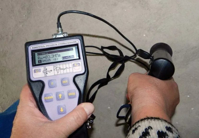 Прибор для измерения прочности бетона Источник geo-solutions.ru Специалисты на основе проведенных исследований определяют слабые места и производят расчеты. Результатом этой работы становится проект ремонта или реконструкции перекрытий.