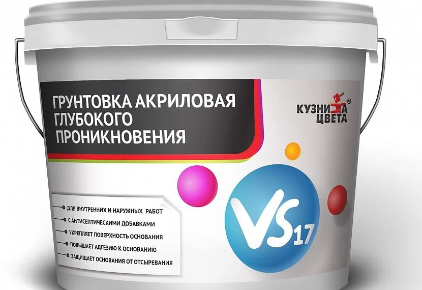 Универсальная по применению смесь, подходящая для обработки большинства типов поверхностей (включая бетонные). Она быстро впитывается в структуру материала, обеспечивает хорошую адгезию. Время просыхания такого состава – до пяти часов. У акриловой грунтовки отсутствует запах.