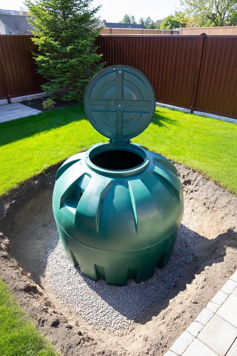 - Модели от 10 условных пользователей устанавливаются с помощью спецтехники — экскаватора или мини-экскаватора. Меньшие модели монтируются вручную, что практически не нарушает ландшафт участка.